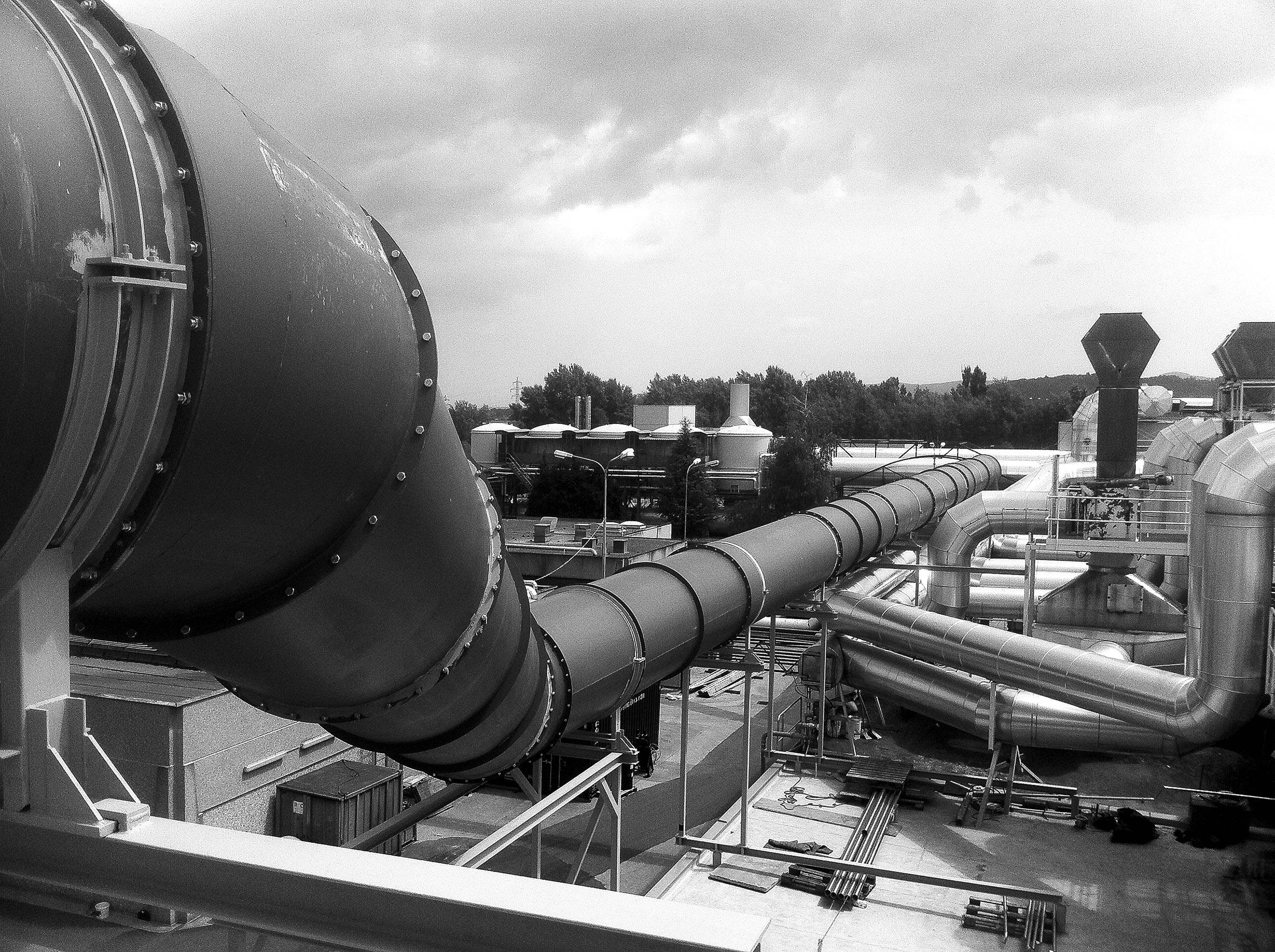 inkl. Stahlkonstruktion von 20 to, Gebläsemontage, Klappen, Sonderteile wie Übergänge, Abzweigstücke, etc.